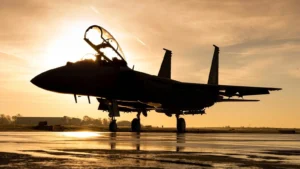 Above: F-15 aircraft on the flight line at the Boeing St. Louis site. (Boeing photo)